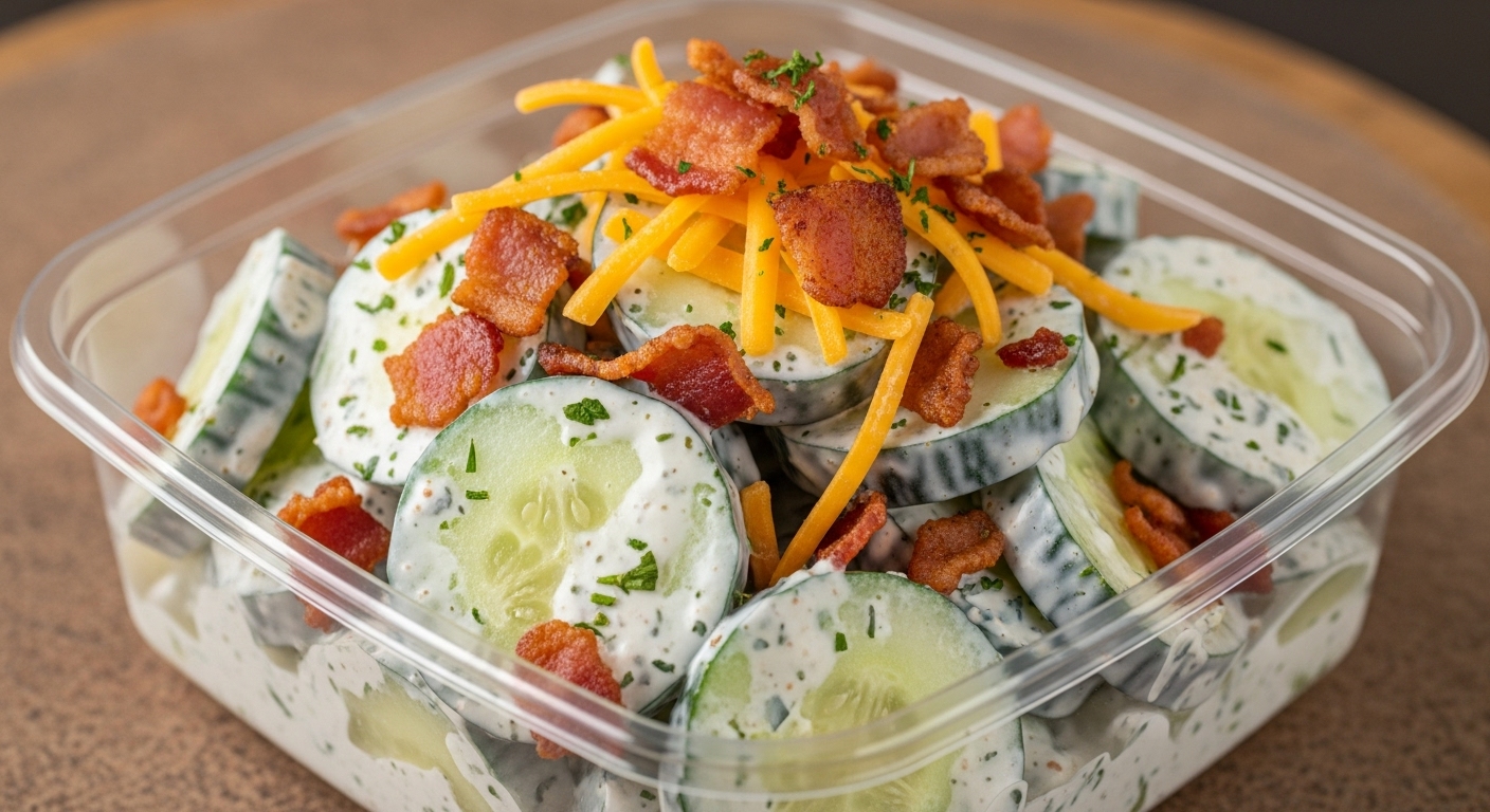 This Creamy Cucumber Salad with Bacon & Cheese is the ultimate fresh-meets-savory combo. Crisp cucumbers are tossed in a cool, herby dressing, then topped with smoky bacon and sharp cheddar cheese for a mouthwatering flavor explosion in every bite. It’s the perfect quick side dish, snack, or summer salad—and it comes together in just 15 minutes. Whether you’re prepping for a potluck, BBQ, or weekday dinner, this easy cucumber recipe is a total crowd-pleaser!