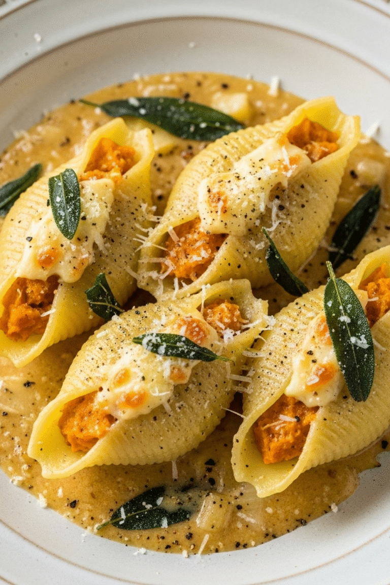 Fall in Love with Pumpkin & Gouda Stuffed Shells in Brown Butter Sage Alfredo Sauce