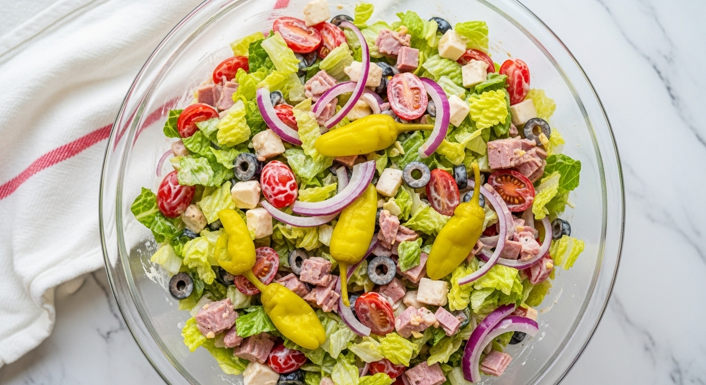 If you love a hearty grinder sandwich, you’re going to be obsessed with this Grinder Salad Recipe—a low-carb, flavor-packed version of the viral TikTok grinder sub in salad form! It’s layered with crunchy iceberg lettuce, savory deli meats, provolone cheese, pepperoncini, and juicy tomatoes—all tossed in a creamy Italian-inspired dressing. This 10-minute salad is bold, satisfying, and ideal for lunch meal prep, potlucks, or a refreshing summer dinner. It delivers all the grinder flavor without the bread!