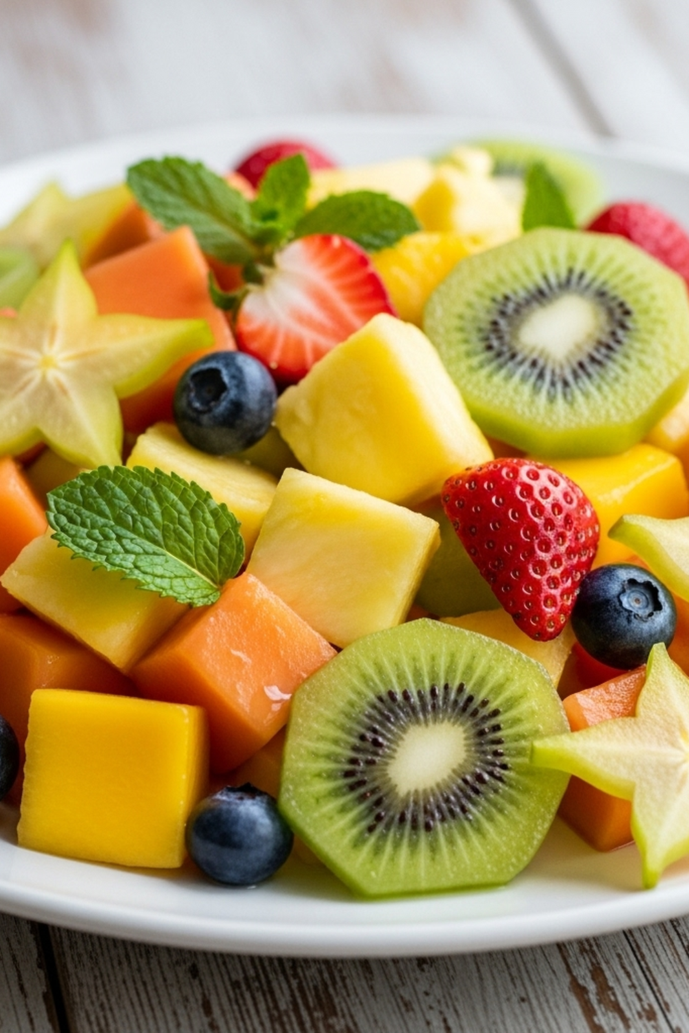 The fiber in the fruits promotes healthy digestion and helps keep you feeling full and satisfied. Fiber aids in digestion and helps you feel full for a longer time, enhancing the benefits of the Hawaiian fruit salad.