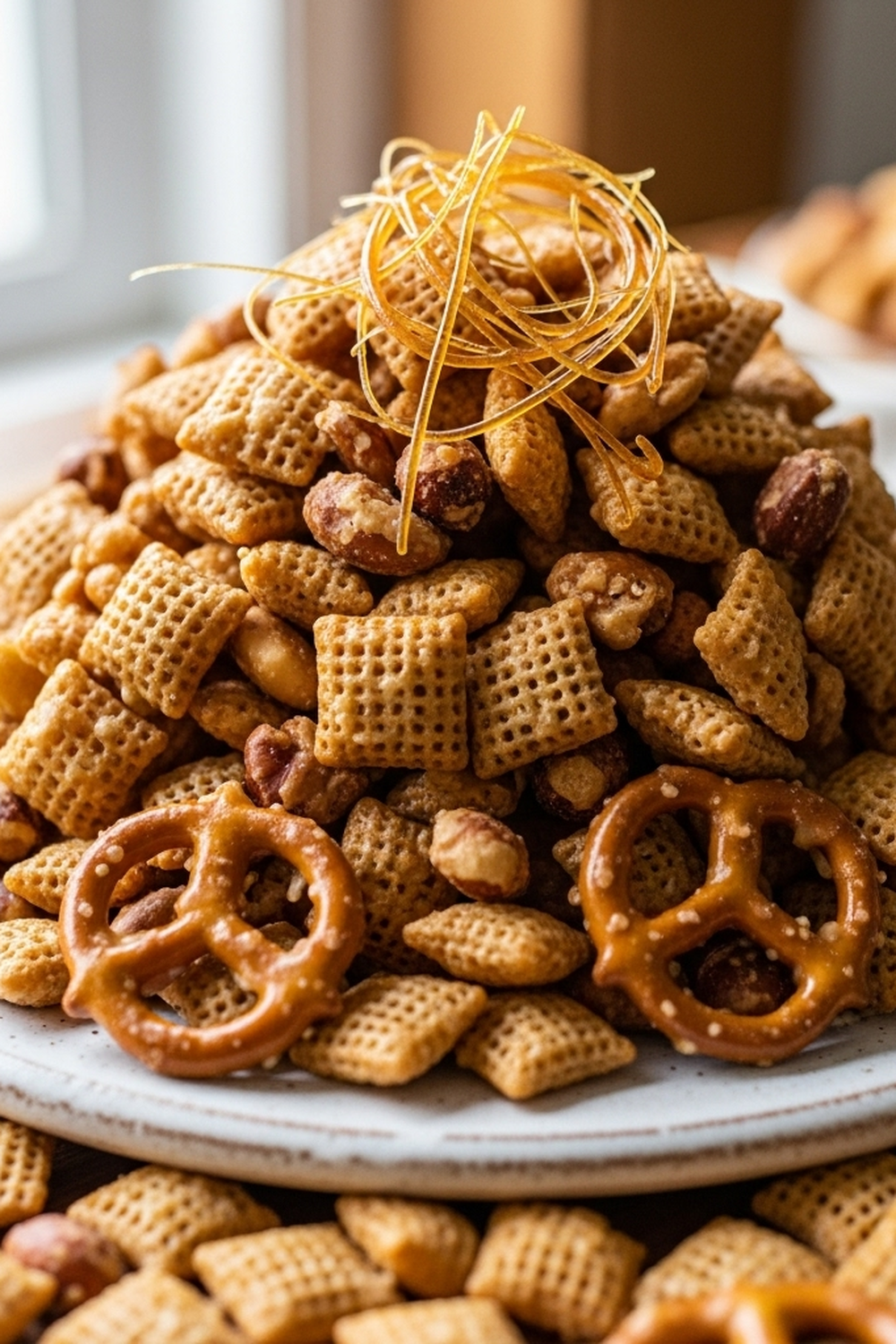 Chex Cereal (Rice, Corn, Wheat): Provides the base of the mix, offering a variety of textures and flavors.