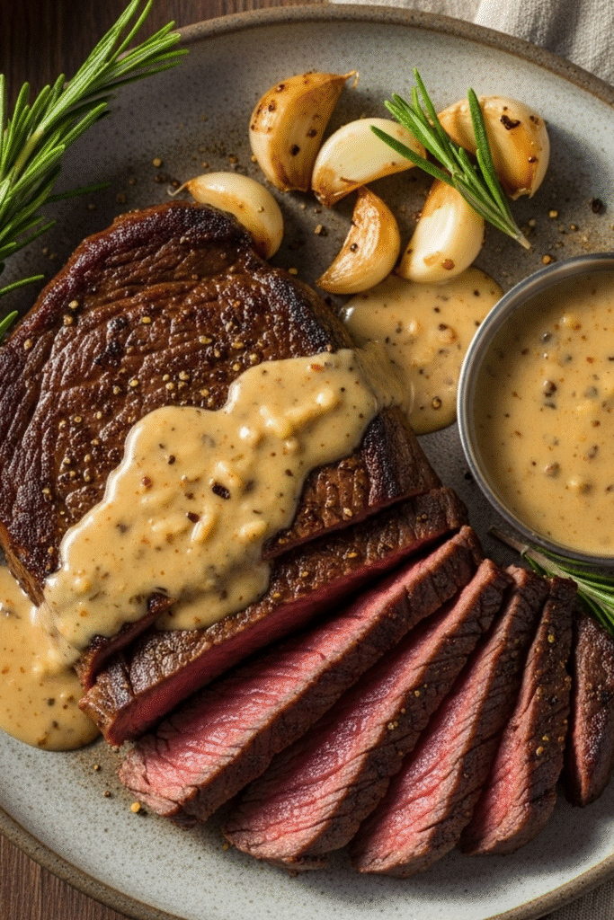 Cast Iron Bavette Steak with Whiskey Garlic Cream Sauce Recipe